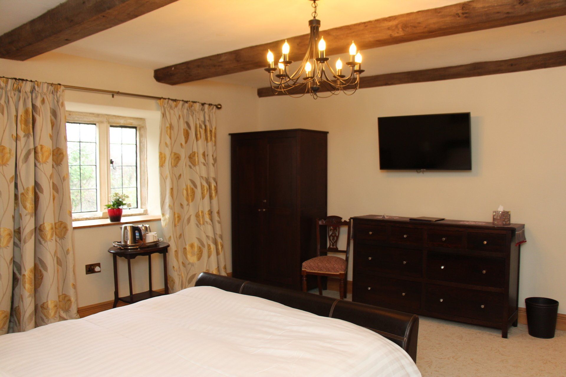 Large room on the first floor with King size bed, Smart TV, tea and coffee making facilities (tea and coffee provided), hairdryer, en-suite bathroom with spacious rainwater shower, underfloor heating and heated towel rail, toiletries provided in wall mounted dispensers (body wash, shampoo and conditioner)